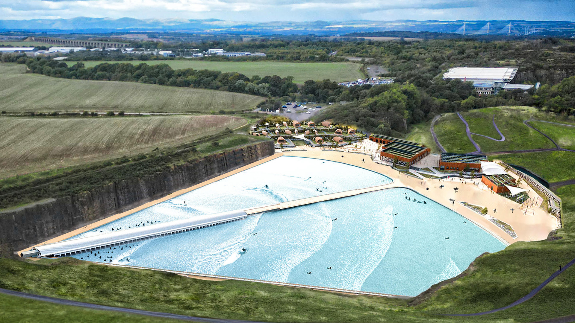 Complejo de ola artificial con tecnología Wavegarden, capaz de generar más de 20 tipos de ola diferentes y hasta 1.000 olas por hora